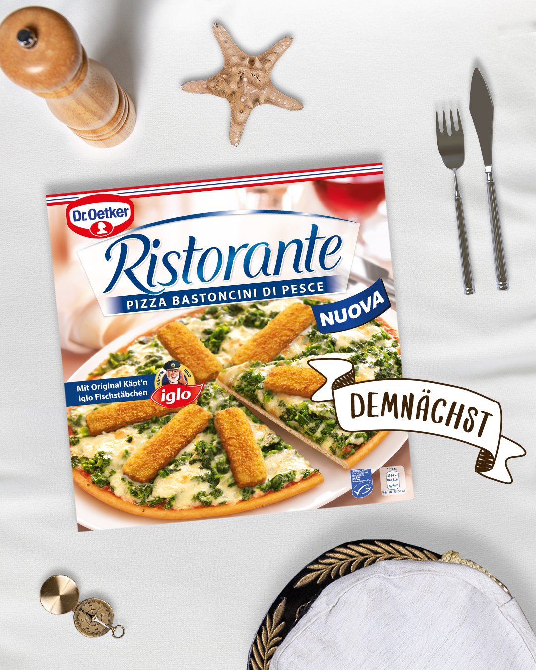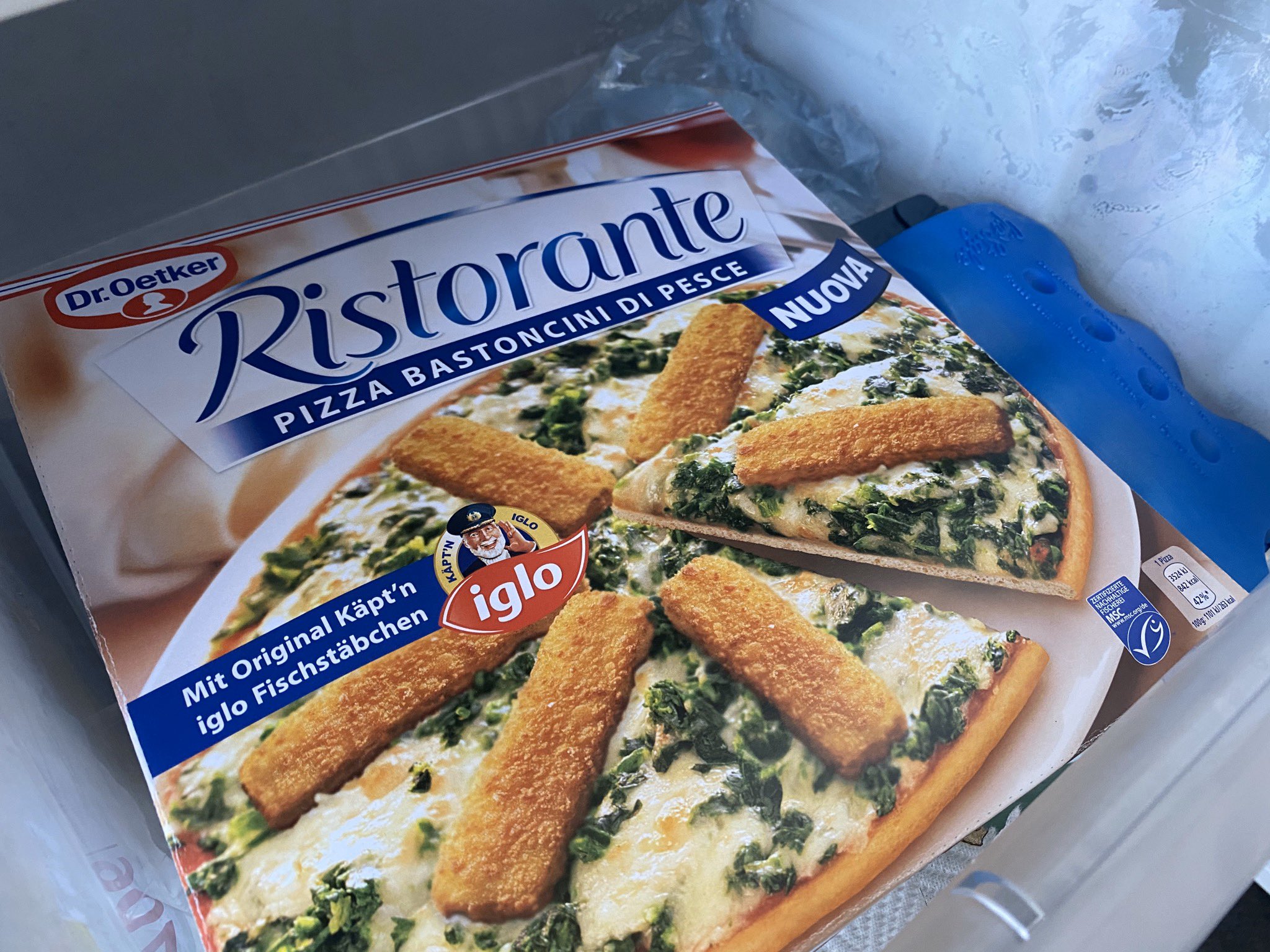 Fischstäbchen auf die Spinatpizza legen und fertig.