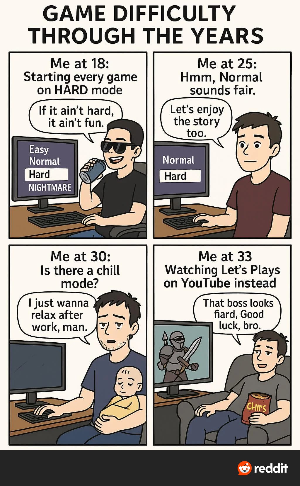 Als Kind hab ich ohne Zögern auf easy gespielt, heute meistens normal, stelle aber manchmal auf hard. Ich bin Gamejamin Button ![]()