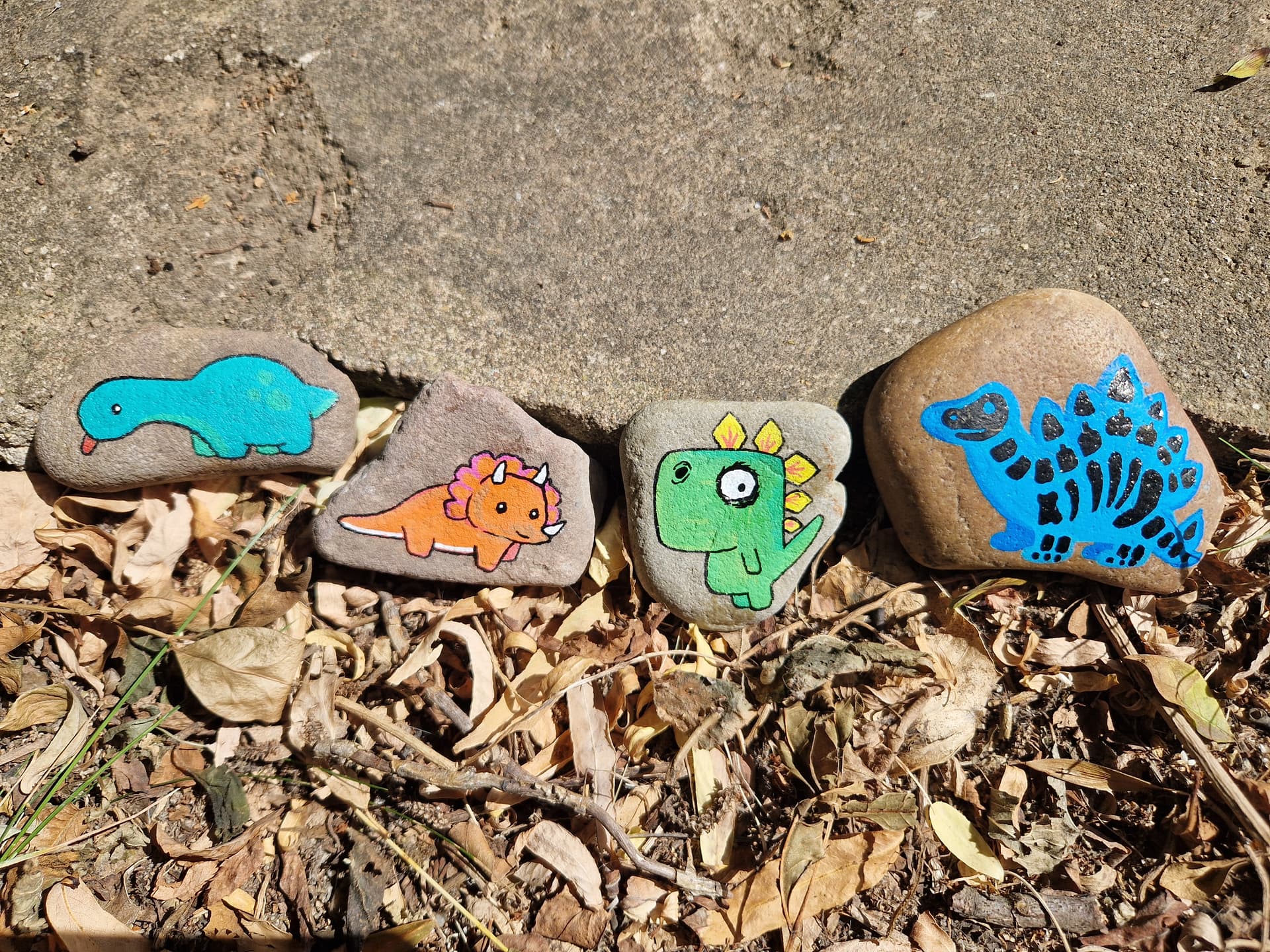 Die letzten stammen tatsächlich aus einem kostspieligen Set Flusssteine von Amazon. Ansonsten sammel ich die selber. Hier in der Nähe ist ein verlassenes Bahngleis mit tausend Steinen, da bediene ich mich gern. Ich würde natürlich nie einen Stein aus dem Nachbargarten mopsen, nur weil er so schön glatt ist. Nie.