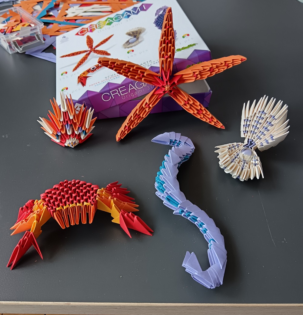 Hat echt Spass gemacht, sieht toll aus. Großer Nachteil der Box, es gibt darin nur eine Anleitung zum Falten der Grundelemente und wie man sie zusammen stecken kann. Für die einzelnen Figuren muss man sich Youtube Videos anschauen, es gibt Online nicht mal Anleitungen zum Ausdrucken oder so.