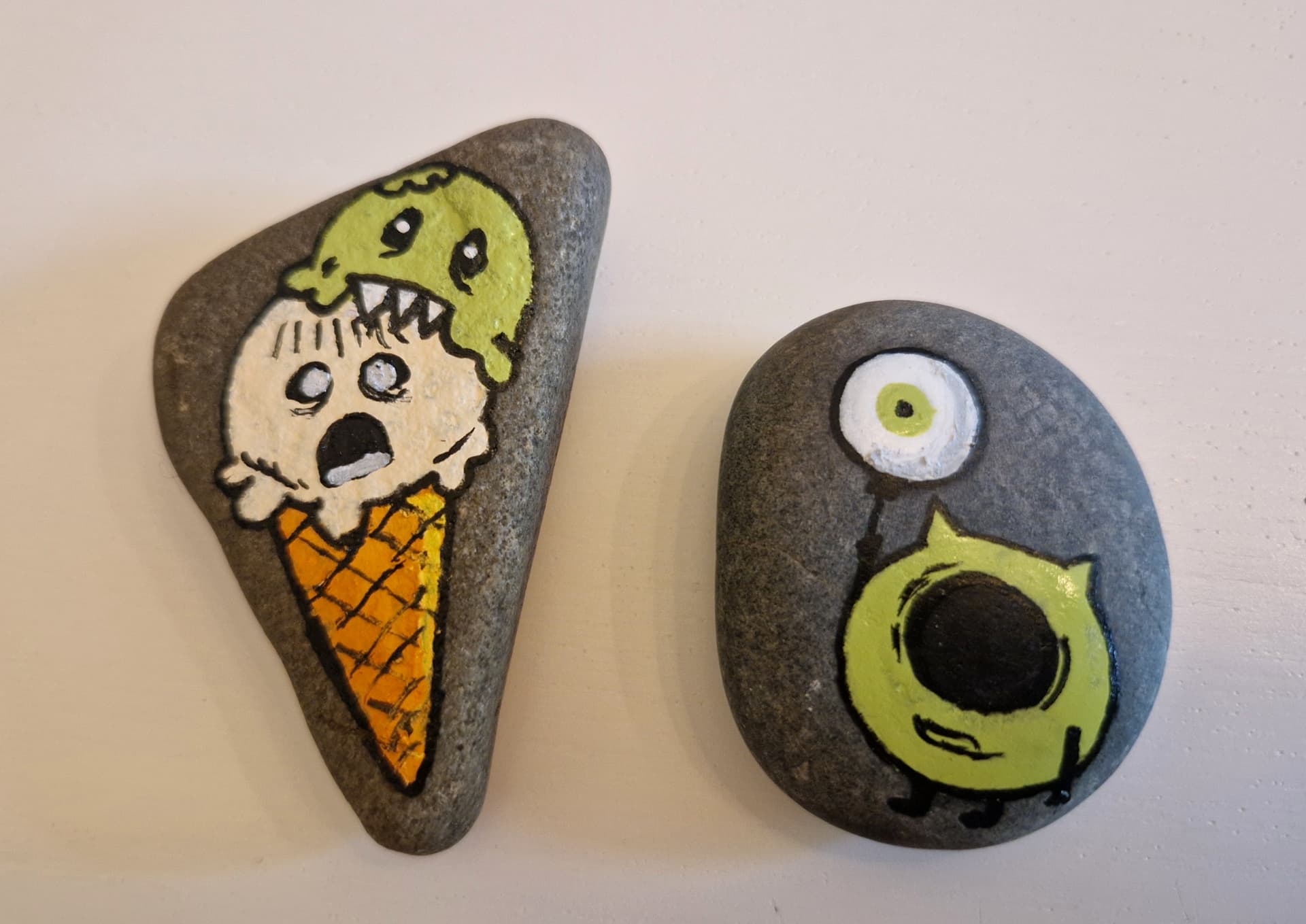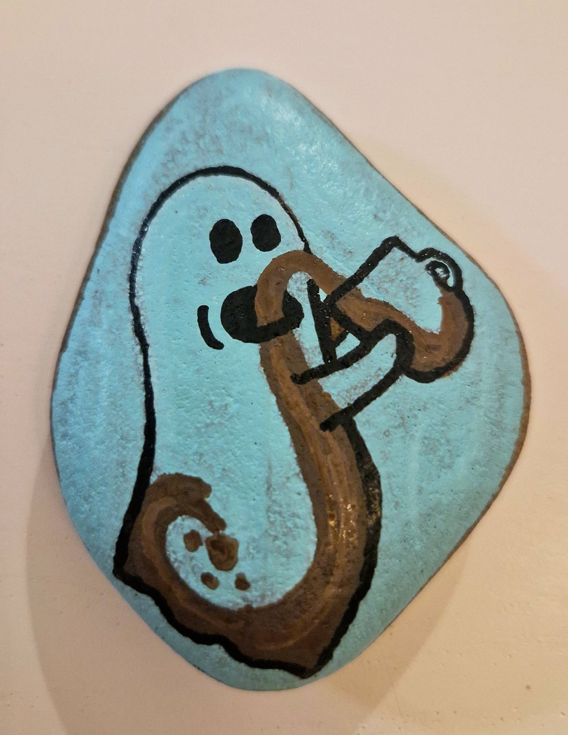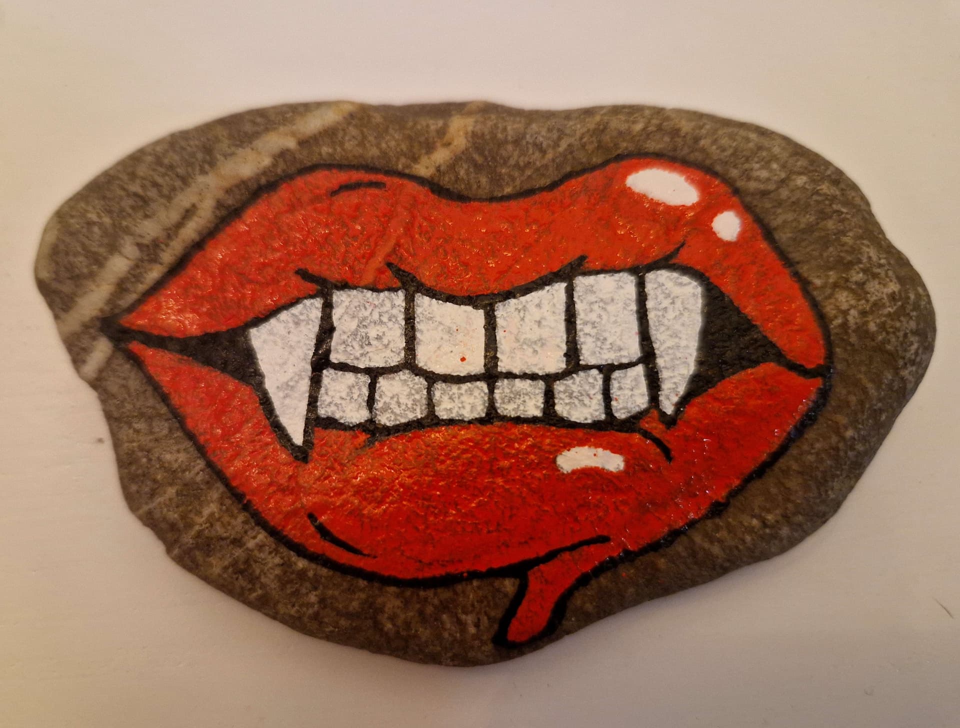 Ich kann gerade nichts malen. Wenn man den Stein umdreht, sieht er wie die Schnauze eines Hais aus. Auge, einige Zähne malen und schon ist es Sharky. ![]()