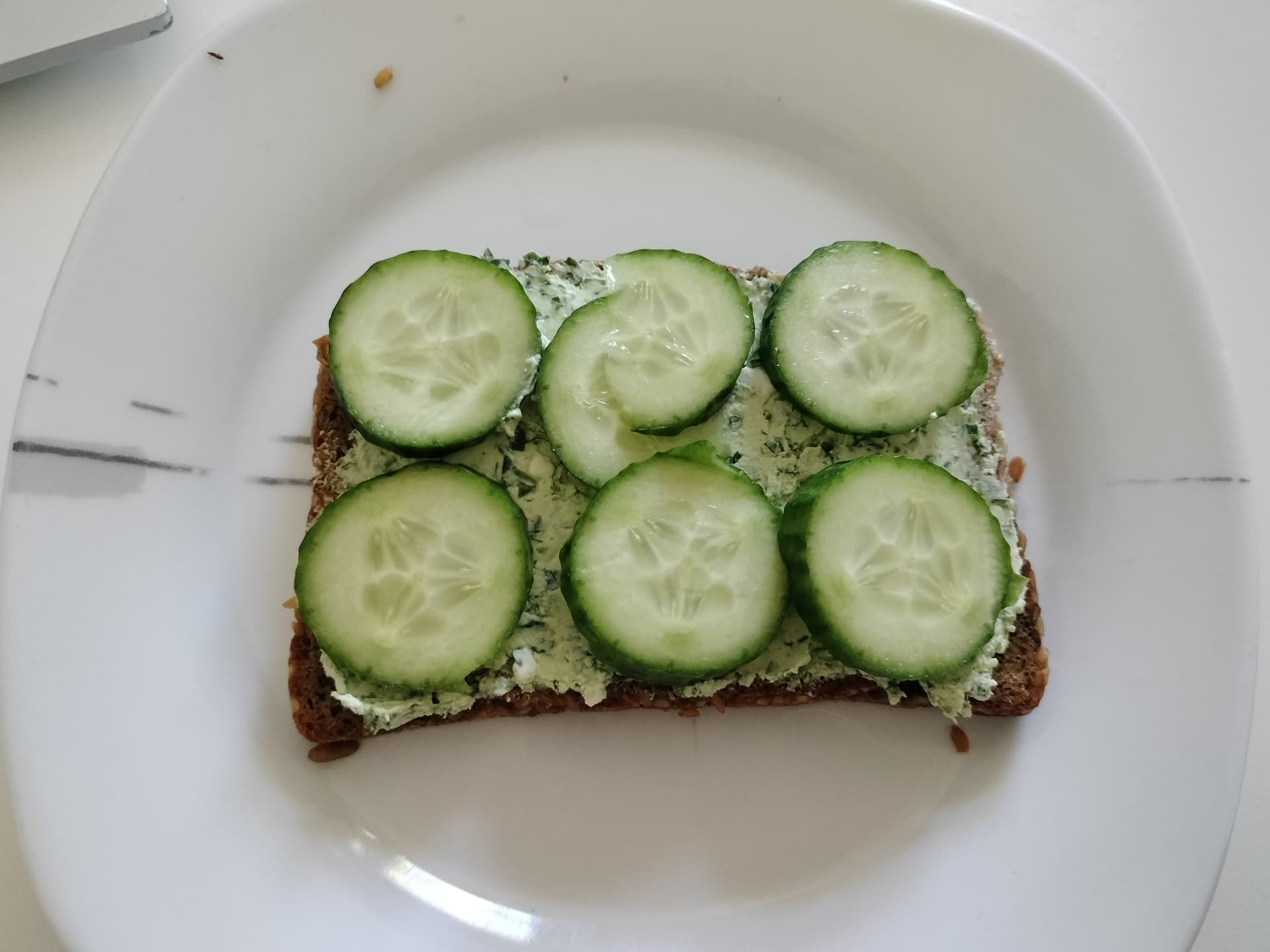 Proteinbrot mit Petersilienfrischkäse und Gurke