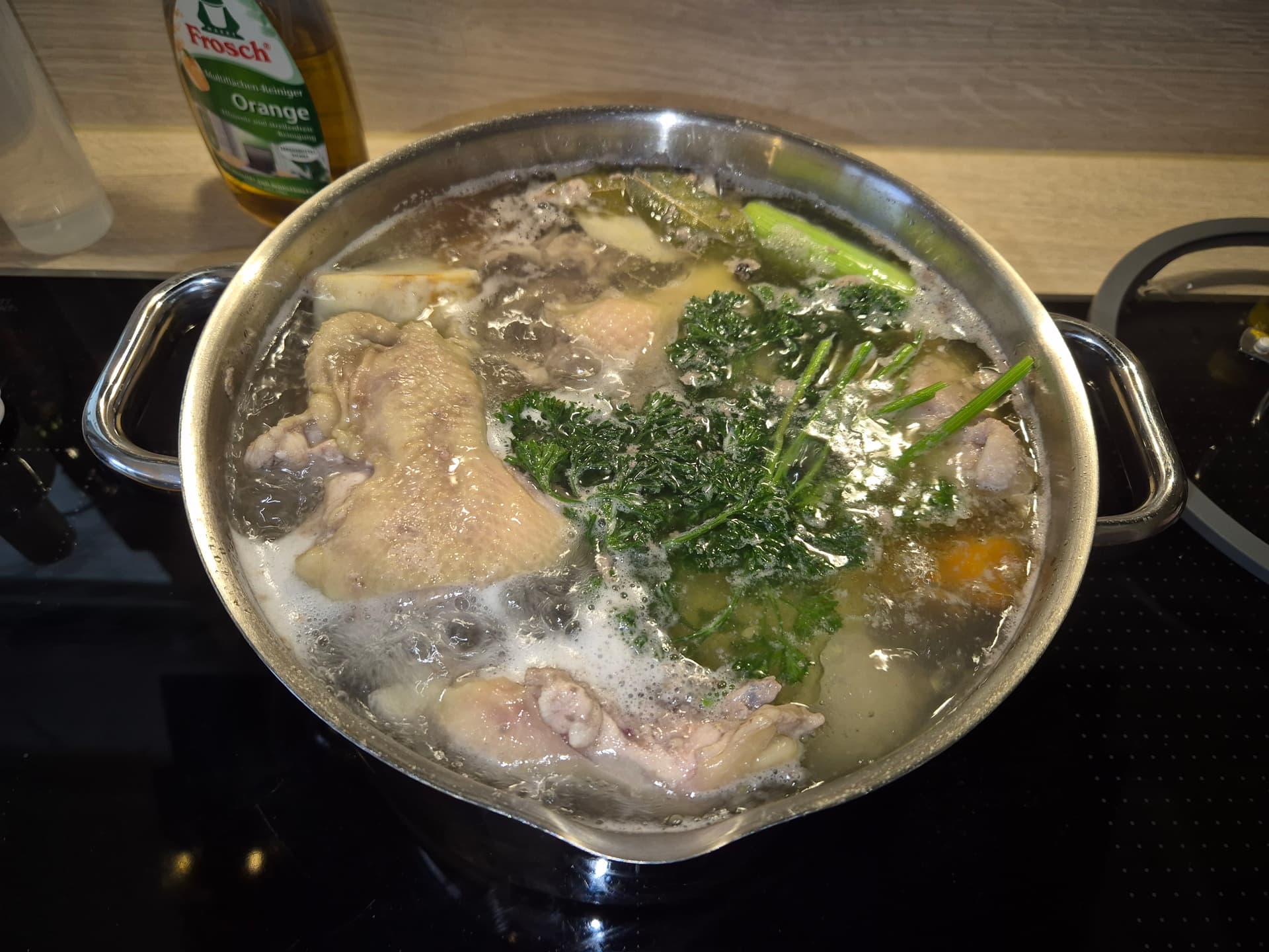 Heute abend gibts Hühnerfrikassee und aus der Brühe hab ich jetzt ne Nudelsuppe für die kranken Kids gekocht. Mit Eierstich ![]()