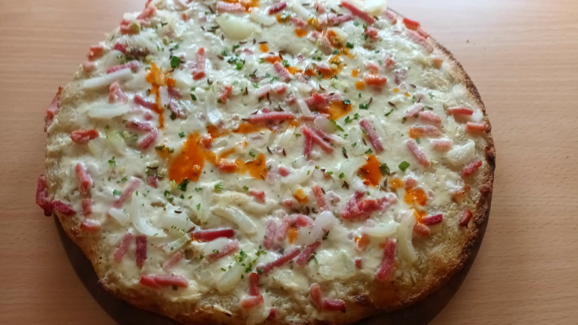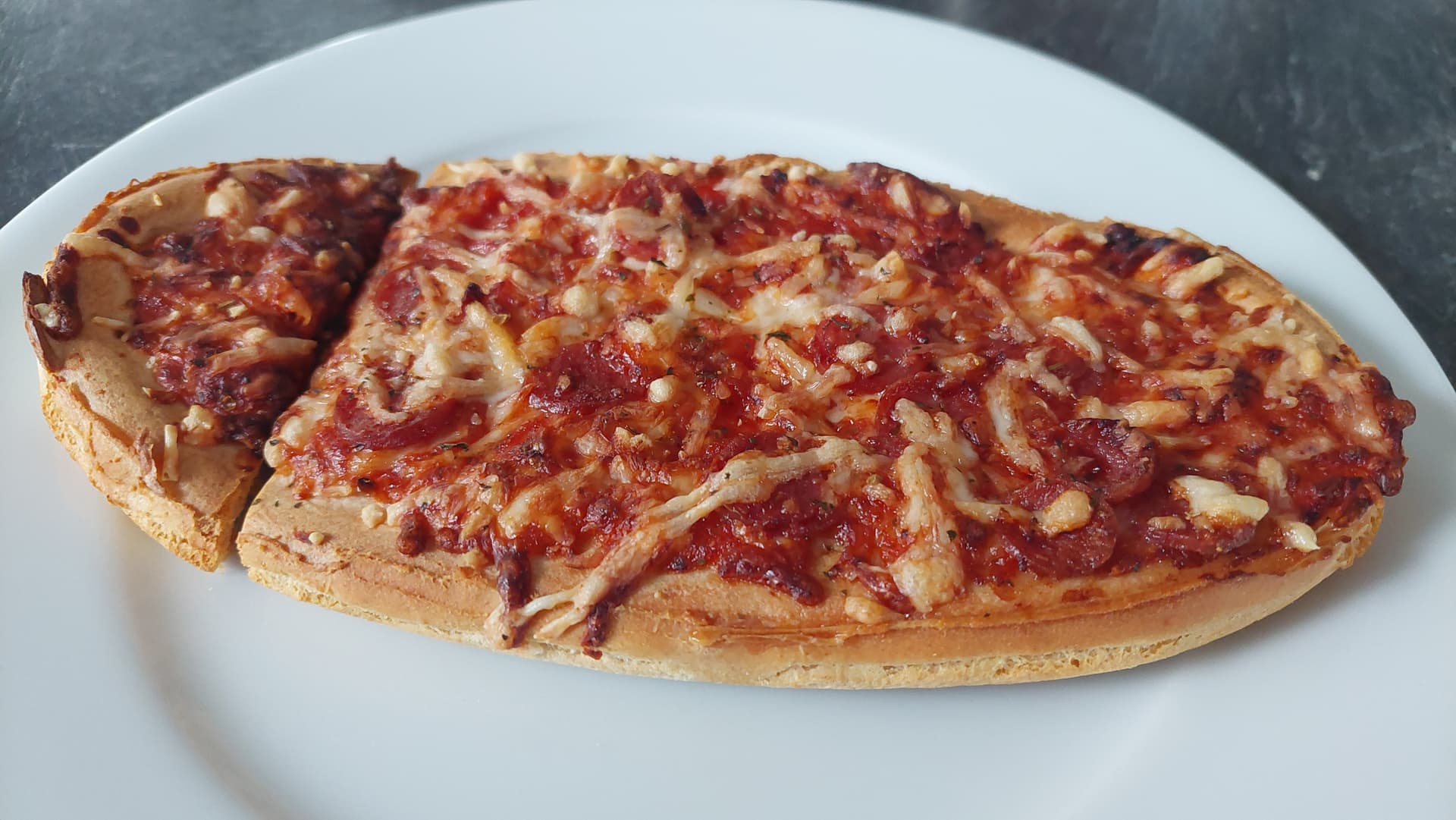 Ist natürlich keine Pizza, sondern eher so ein Oetker Bistro Baguette. Wenn ich’s damit Vergleiche finde ich’s sogar besser, weil es mehr Fläche hat.