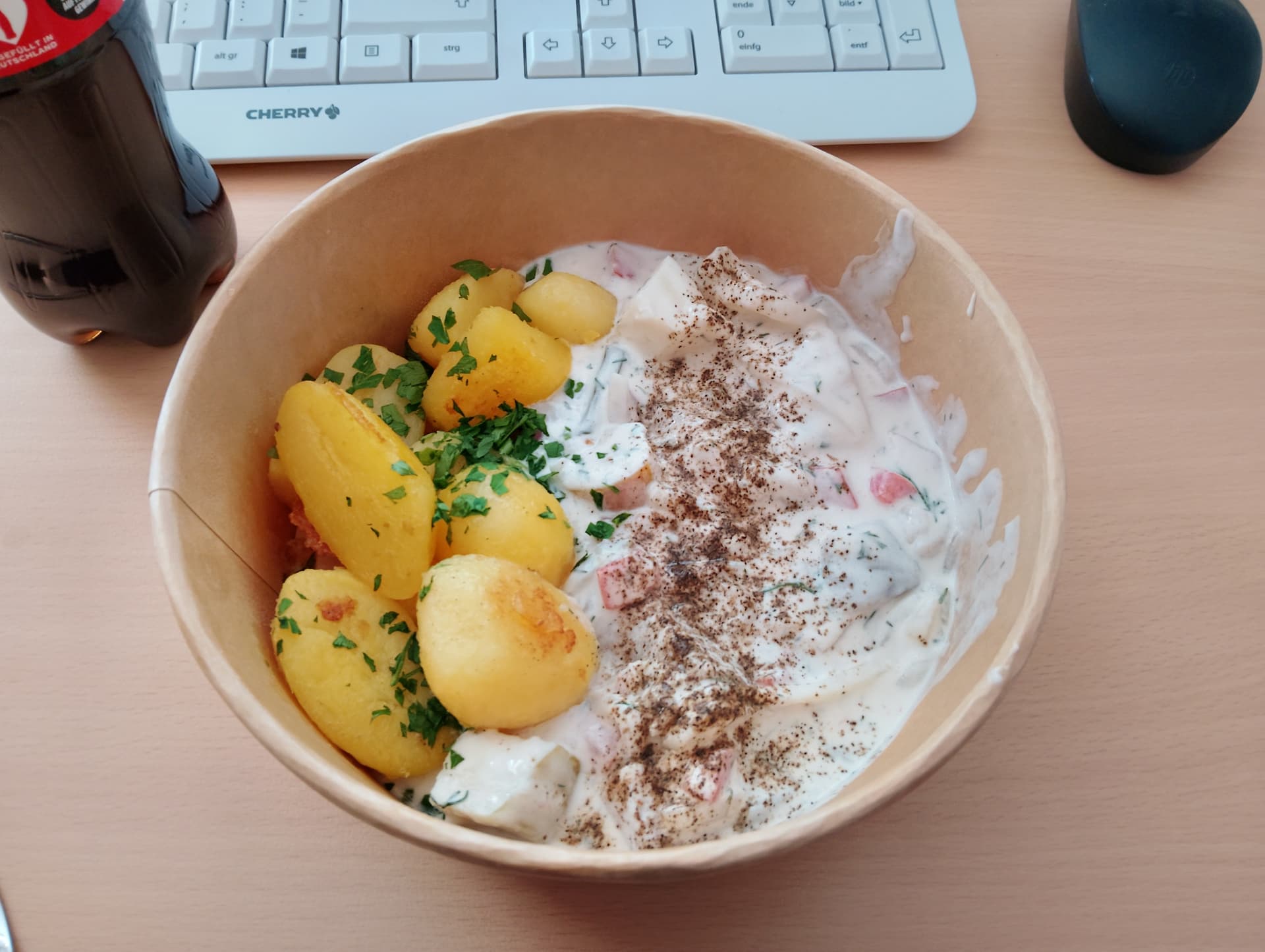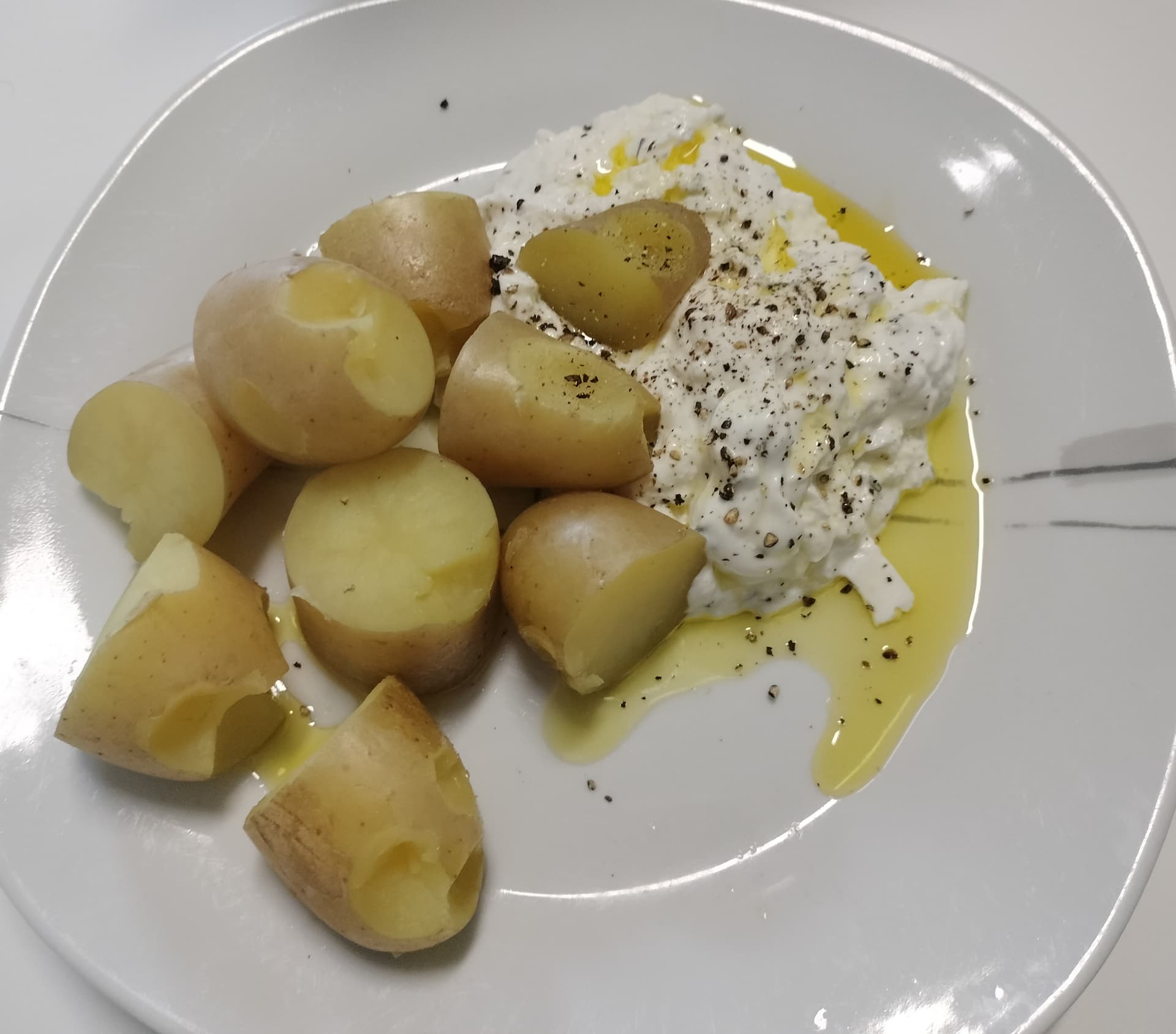 Kartoffeln mit leichtem Kräuter-Quark, Leinöl und etwas Pfeffer