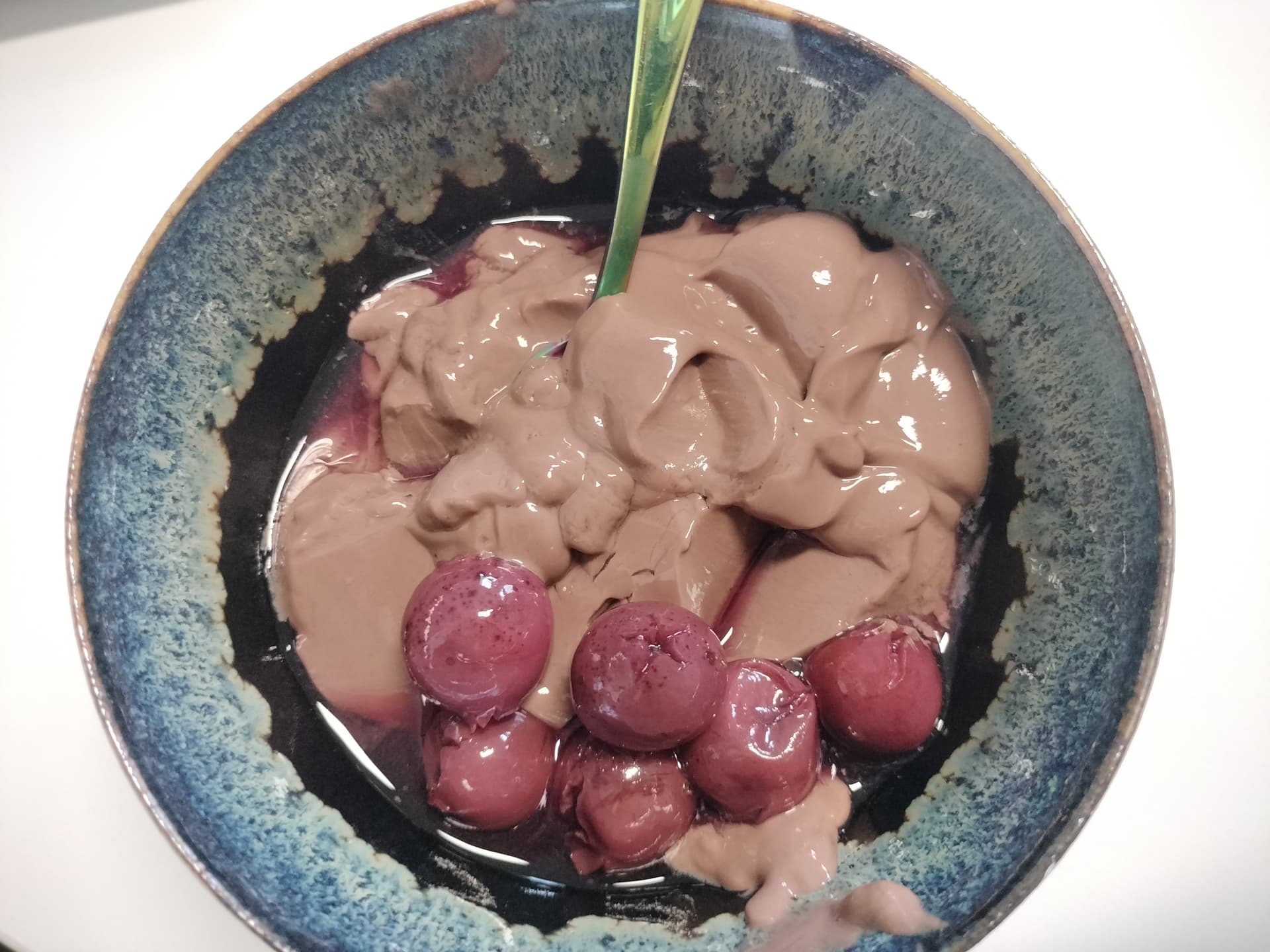 Veganer Schoko-Proteinpudding mit Kirschen aus dem Glas
