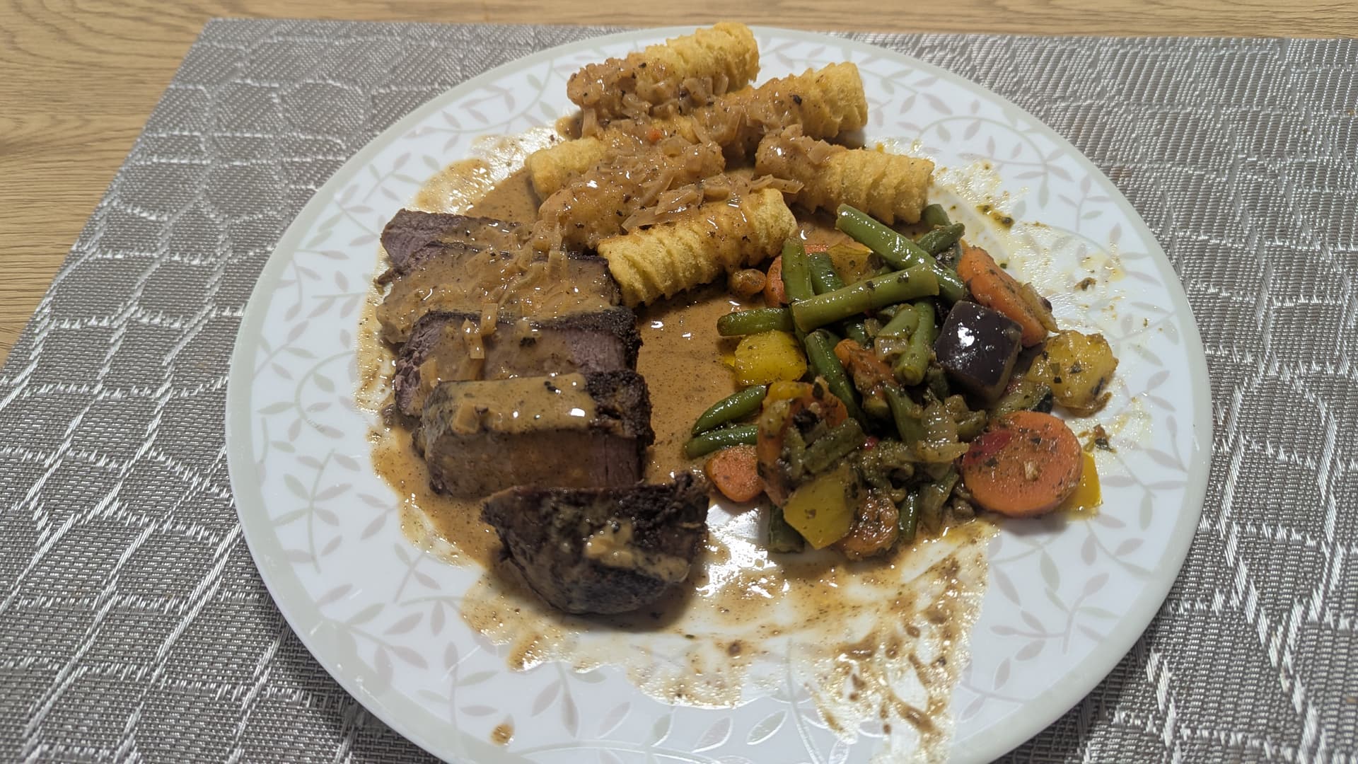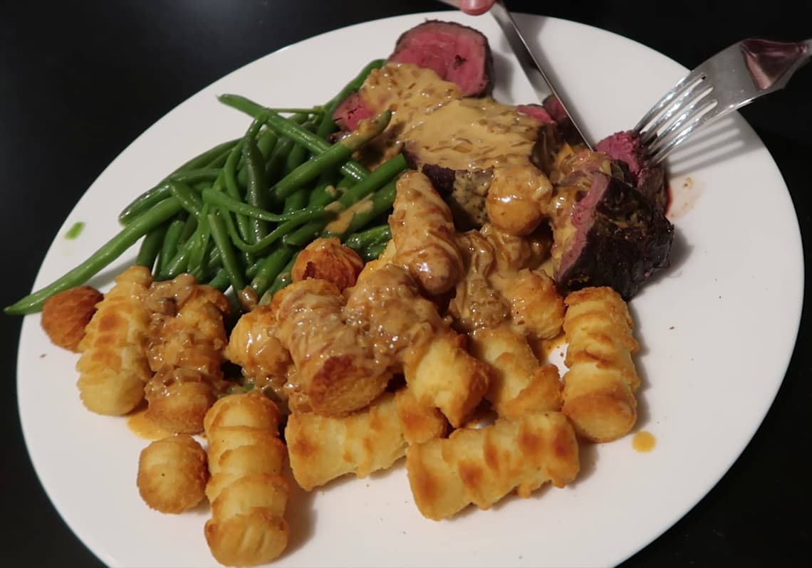 Letztendlich ist das aber sehr lecker geworden. Es ist ein recht teures Gericht (gerade der Whiskey kann einen ziemlich großen Einfluss auf den Preis haben), aber es ist halt auch sehr lecker. Leider kommt nur recht wenig dabei herum. Ich habe für zwei Personen gekocht und das habe ich allein gegessen. Also falls ihr das mal nachkochen wollt, macht es auf jeden Fall für mehr Personen, wenn ihr davon für später noch was haben wollt.