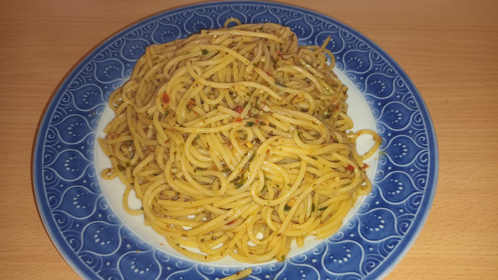 Spaghetti mit Knoblauch, Chili, Kräutern und Olivenöl