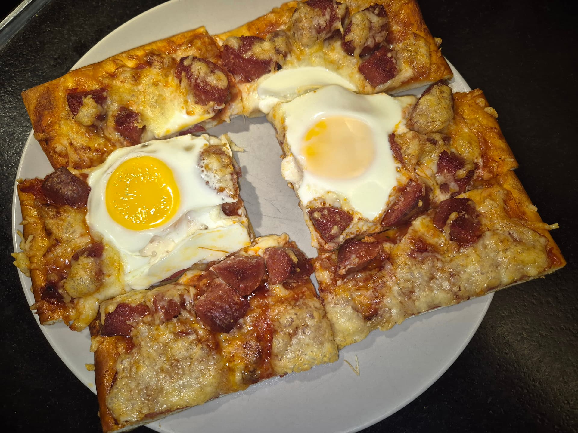 Am Wochenende Sucukpizza mit Ei auf Arbeit gemacht