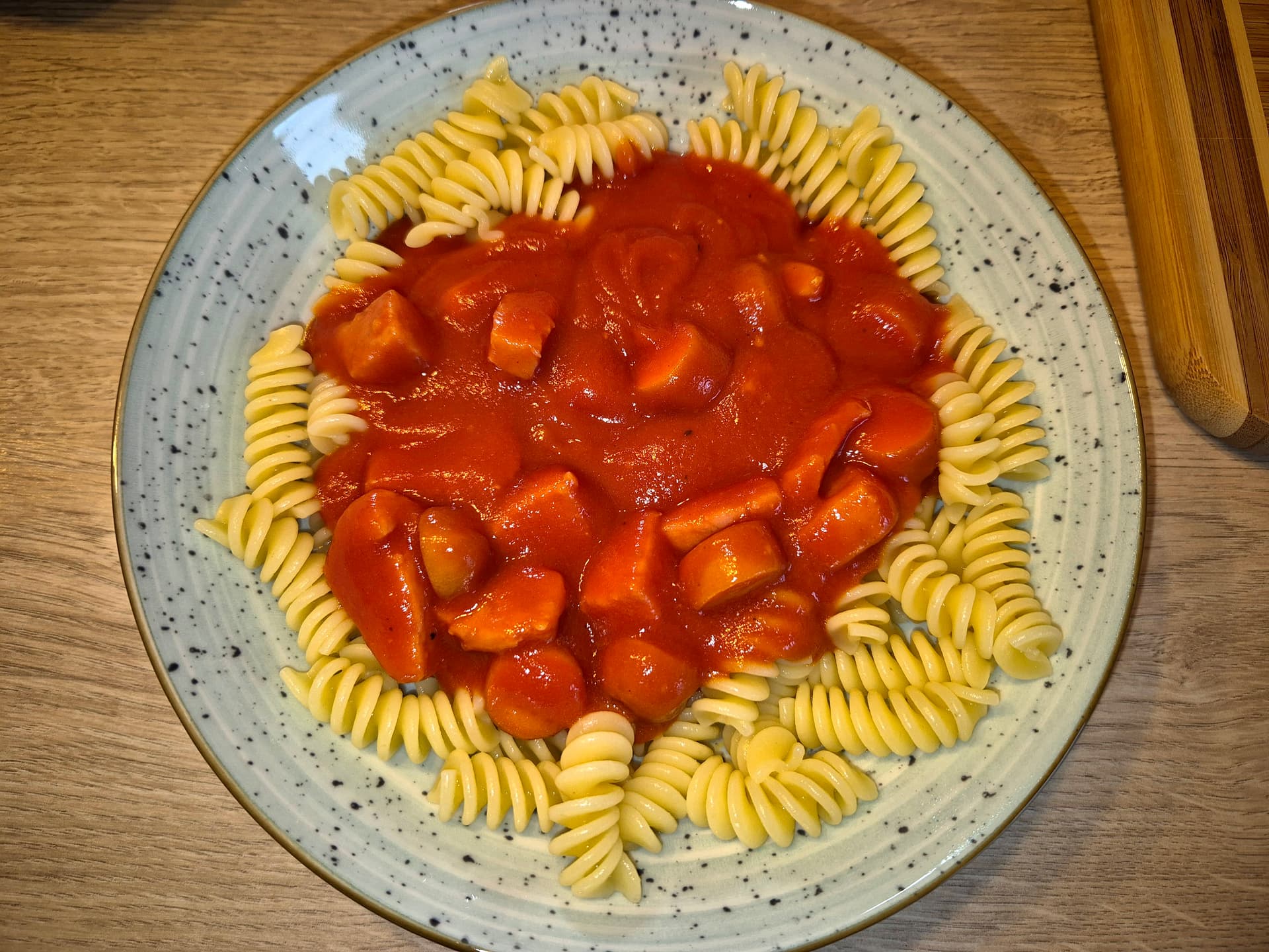 Kind ist krank und wollte gern Nudeln mit Soße und Jagdwurst ![]()