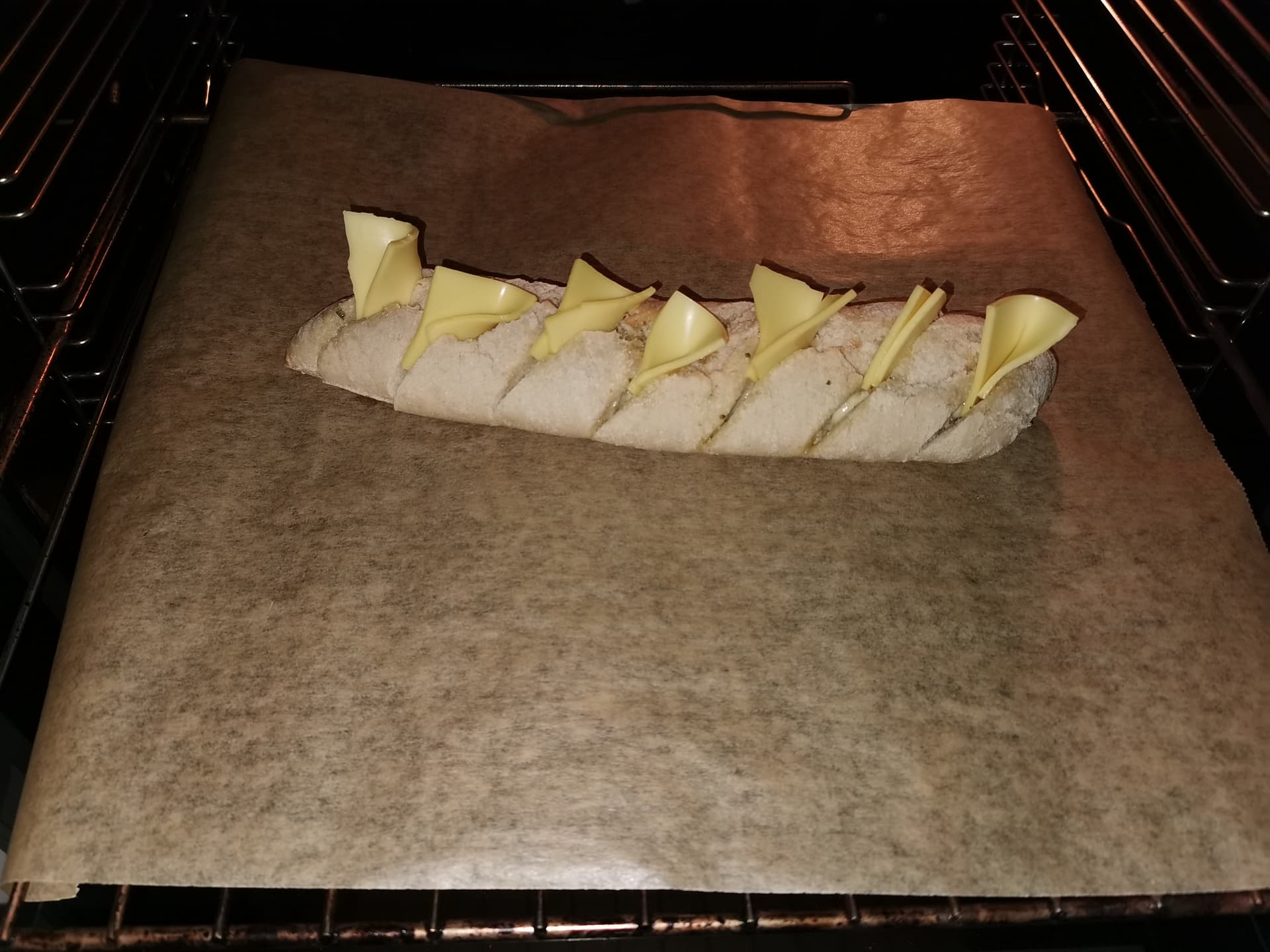 Ist das so ein Billo-Kräuterbaguette? Voll die geile Idee, da in die Ritzen einfach noch Käse reinzuprummeln! ![]()