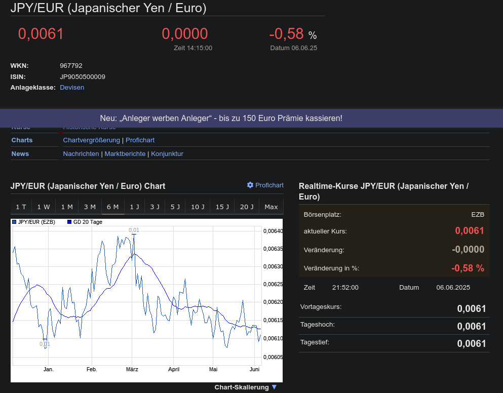 Der Yen steht so semi gut da, ich hab selbst keinen Einblick in die japanische Wirtschaft, doch auch die Nachfolge-Regierung von Abe hat mit den Problemen der wirtschaftlichen Folgen zu kämpfen.