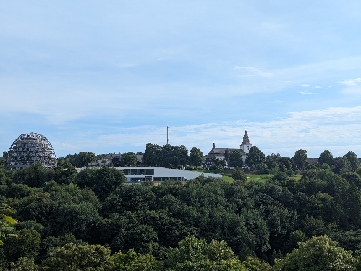 Ein Bolzplatz in einer Wanne zwischen Wald, Kanal und zweimal Straße