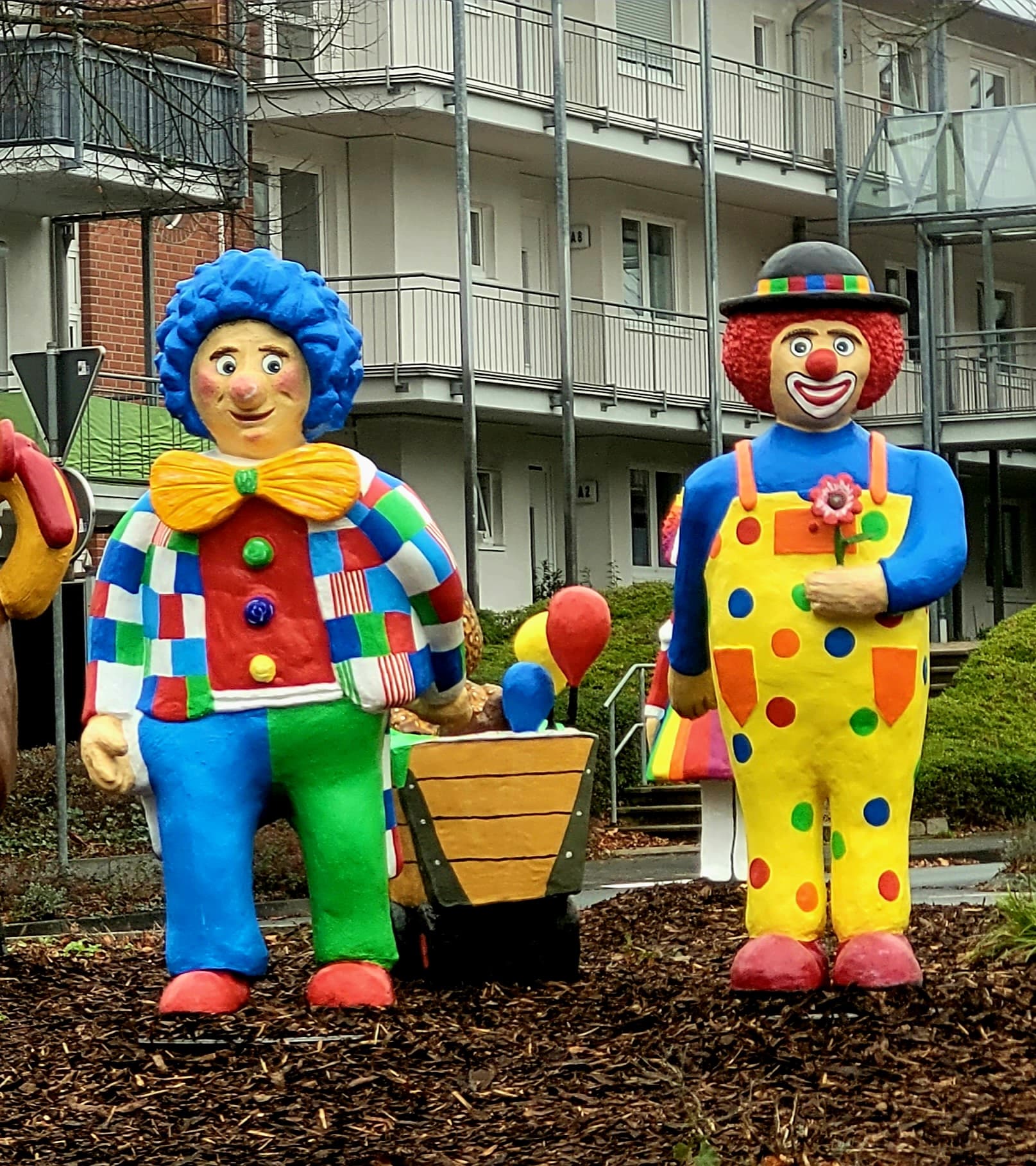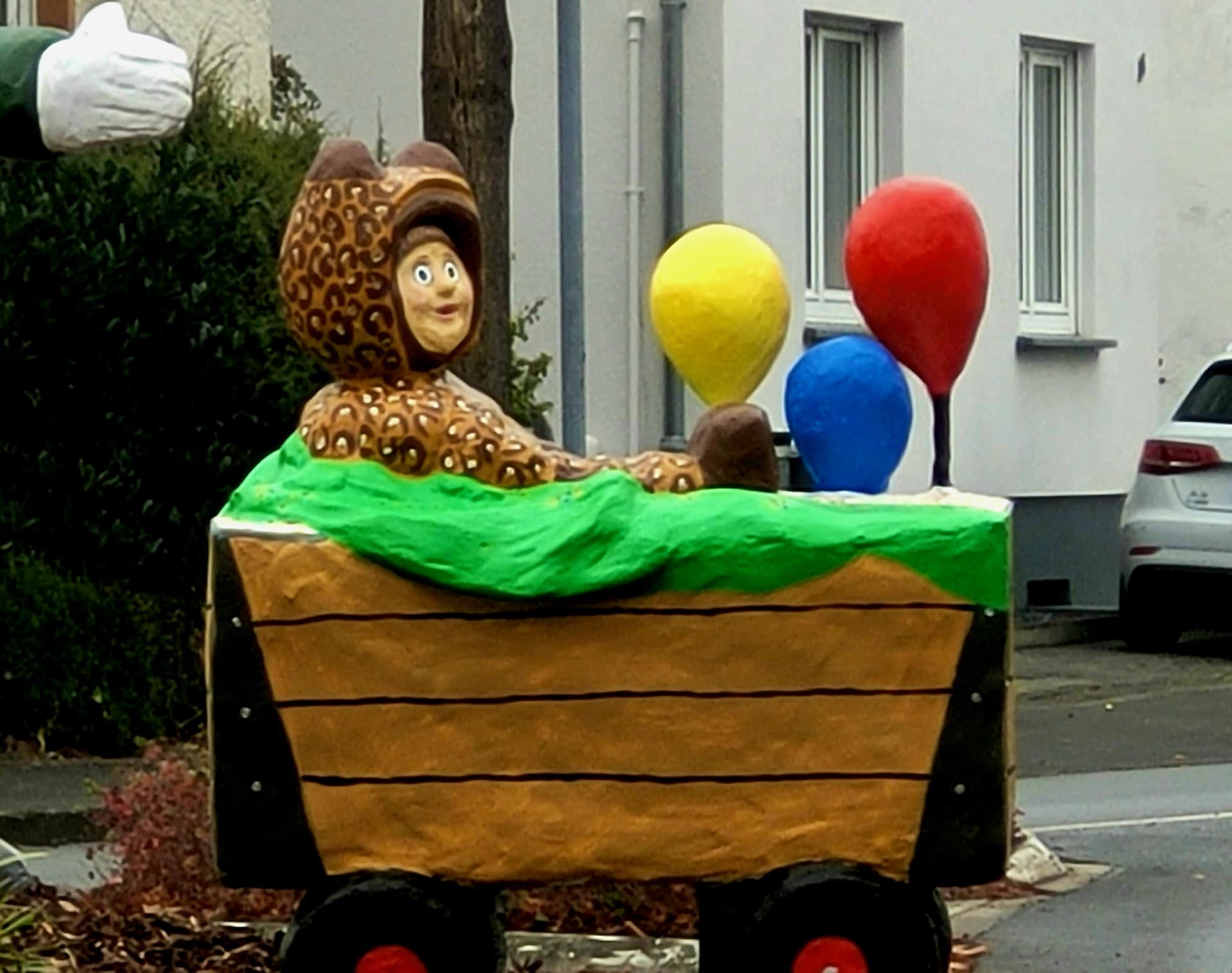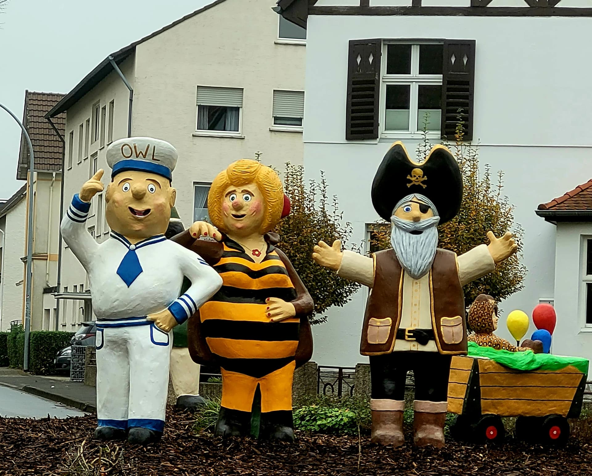 Bei uns wurden heute mehrere Betonfiguren auf einem Kreisel enthüllt, die vom Karnevalsverein entworfen und gebaut wurden.