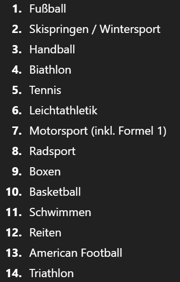 Wenn dann immer so etwas wie Wintersport, Handball oder Leichtathletik.