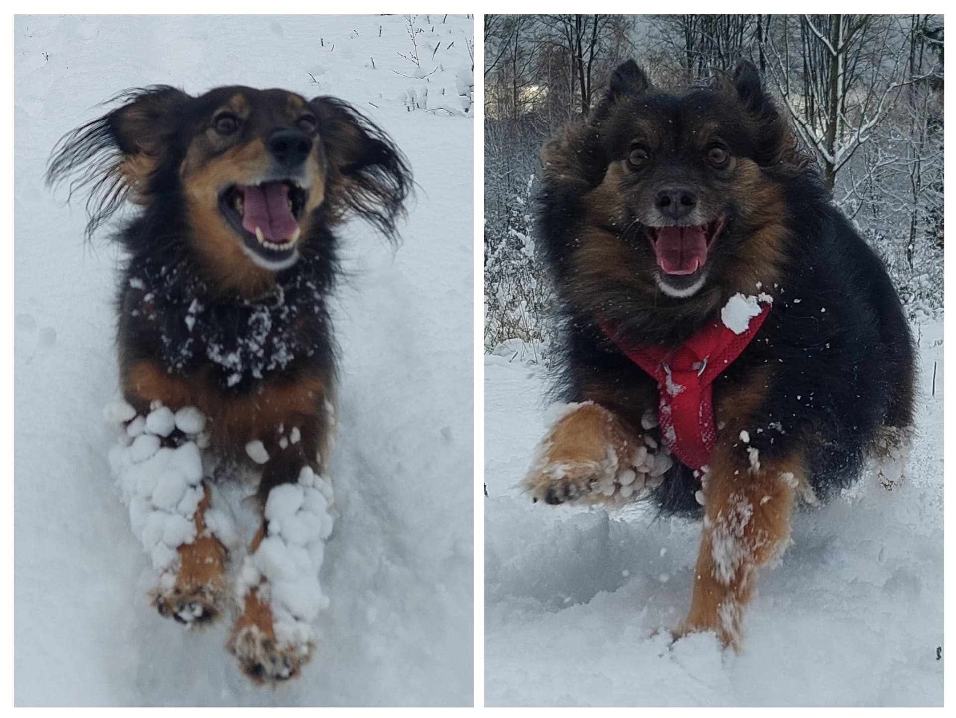 Die waren gerade in der warmen Dusche, damit die Schneebobbel wieder abgehen. Wenn die Hunde wieder trocken sind, werden die Beine frisiert. Ja länger da die Haare sind, desto mehr Schnee bleibt da hängen und für Sonntag ist ein Schneeausflug ins Sauerland geplant.