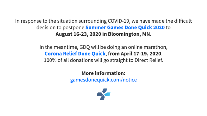Leider wird Summergames done quick später stattfinden.