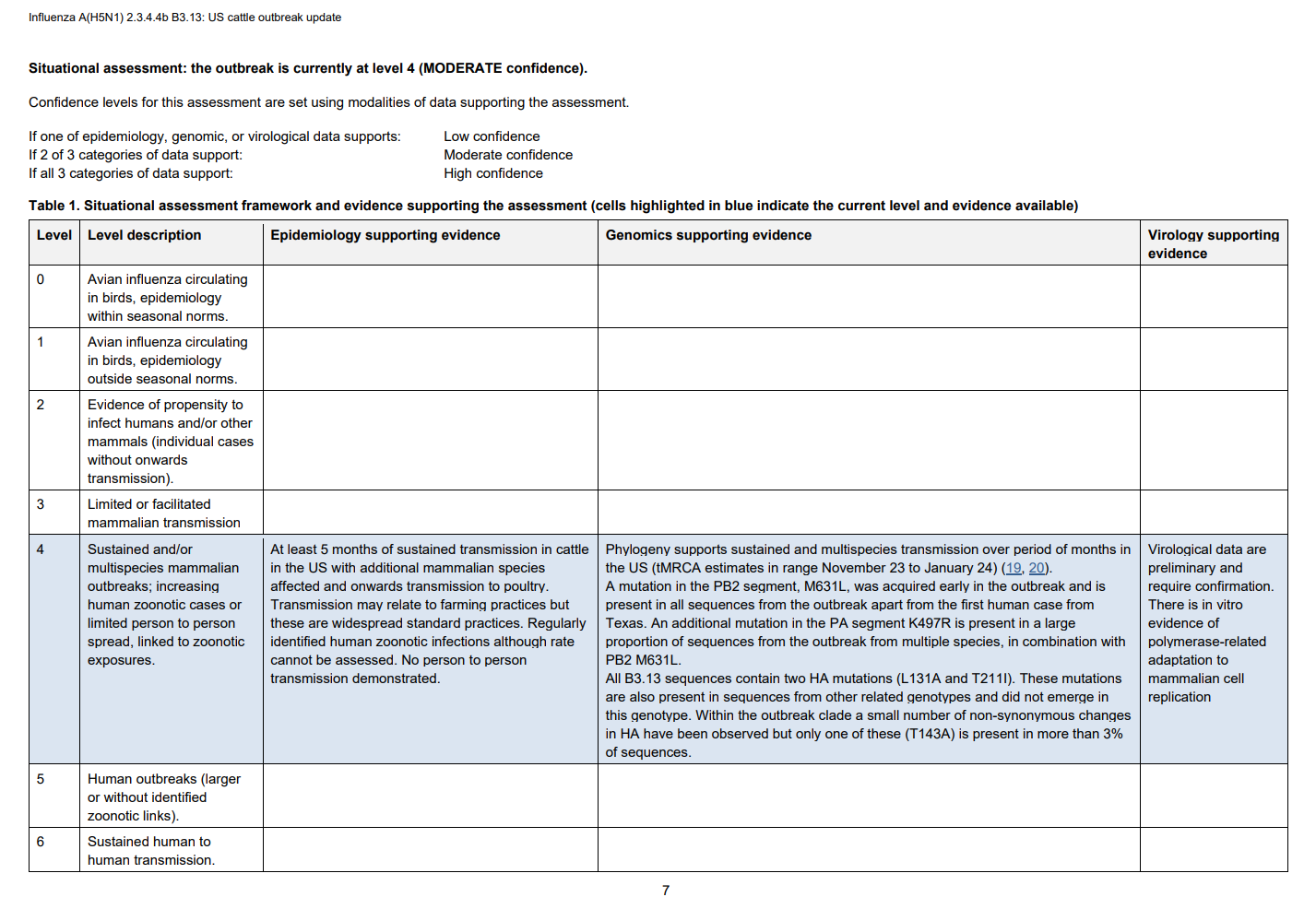 Levels are indicators that a zoonotic influenza virus outbreak may be an increasing human