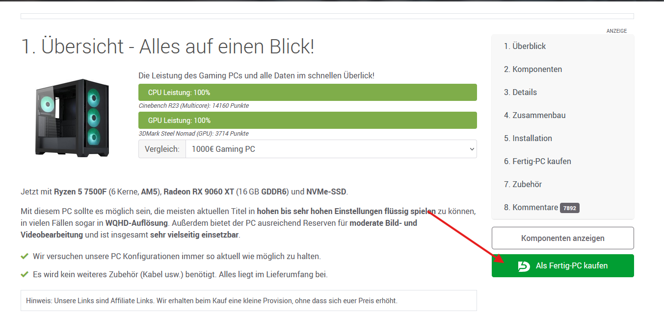 Also die Jungs von https://www.hardwaredealz.com/ haben auf ihrer Seite immer für jedes Budget passende Konfigurationen (einfach oben auf „Gaming-PCs“ und dann das Budget auswählen).