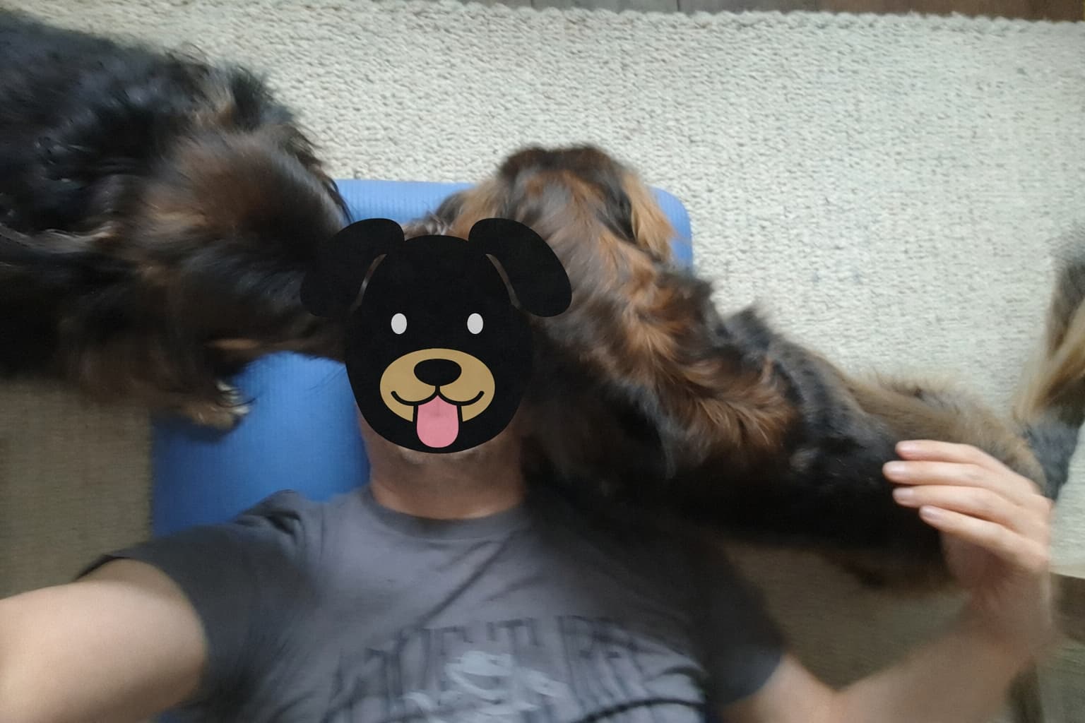 „Mach mal ein bisschen Sport“, haben sie gesagt, Bisschen Mobi-Übungen auf der Yogamatte sollen helfen. JA WIE DENN MIT ZWEI HUNDEN??