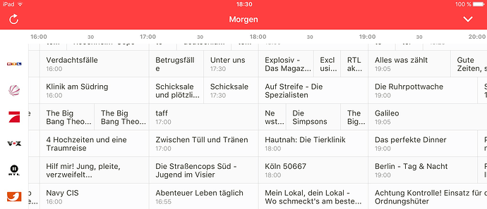 Mit Hauptprogramm ist nicht die Uhrzeit gemeint sondern die Sender. Also Pro7, Sat 1, RTL. Schauen wir uns doch mal den morgigen Tag an: