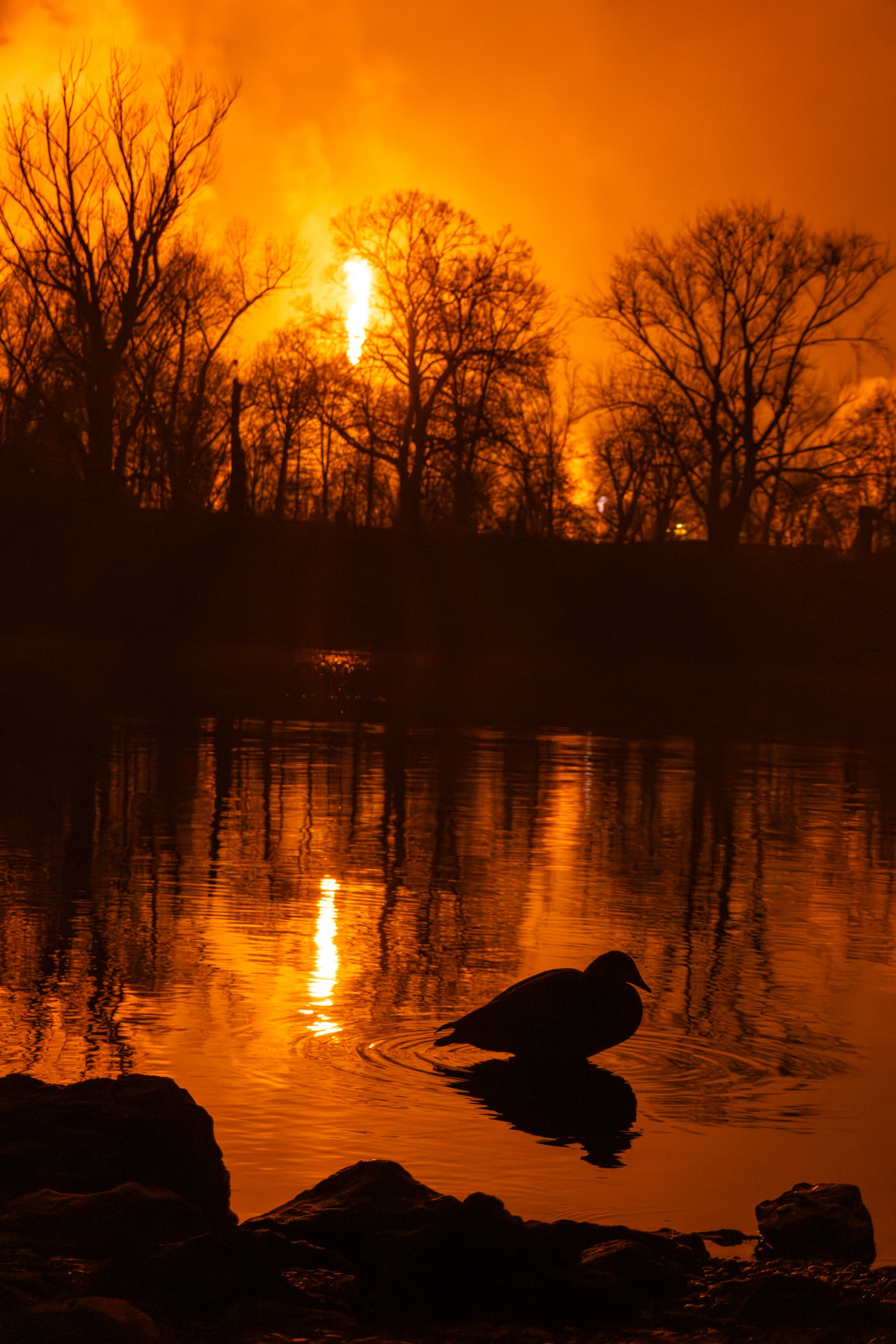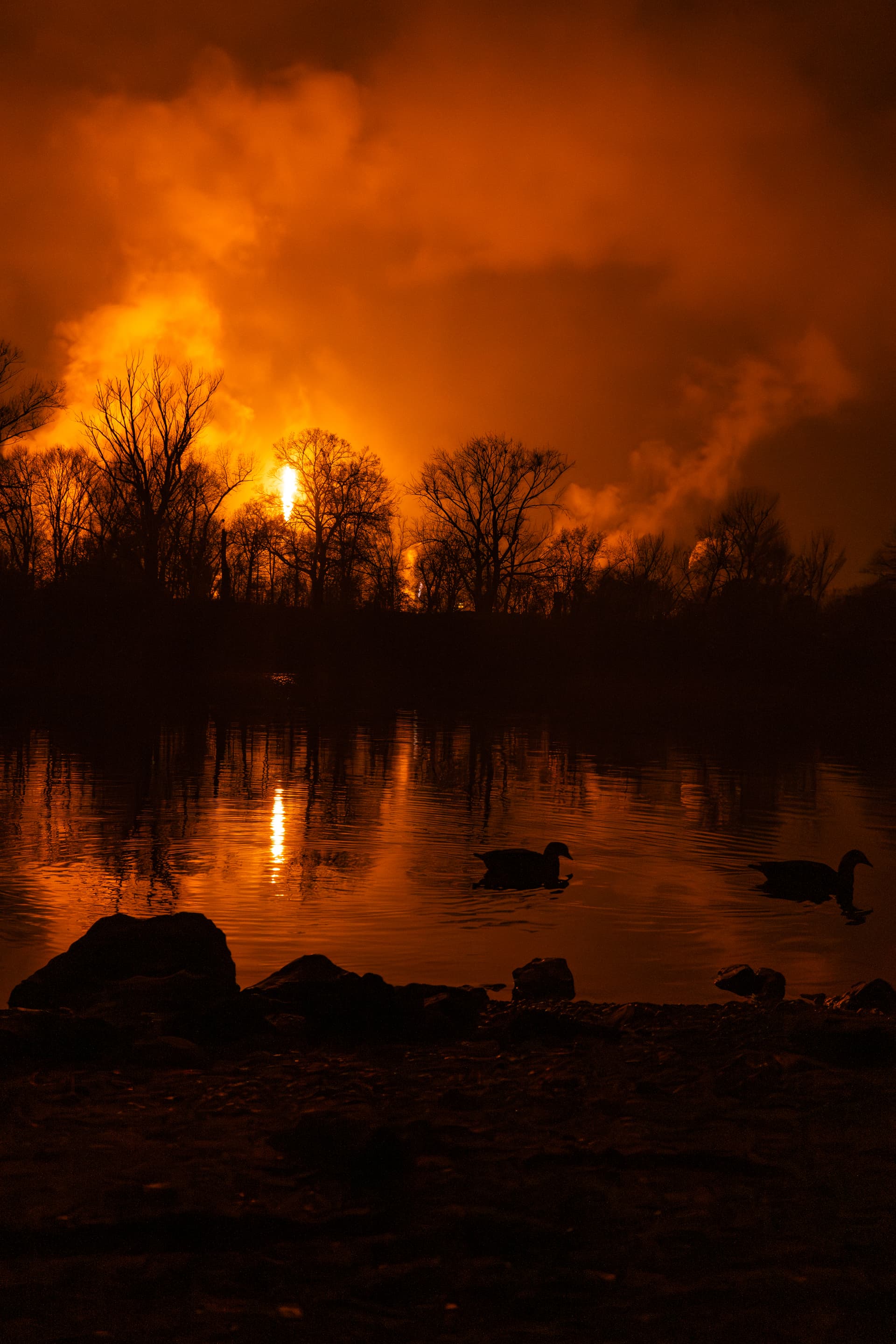 Als letzte Woche die BASF-Fackel anging und der ganze Himmel rot war hab ich meine Kamera geschnappt und bin zum Altrhein an die Fähre geradelt-