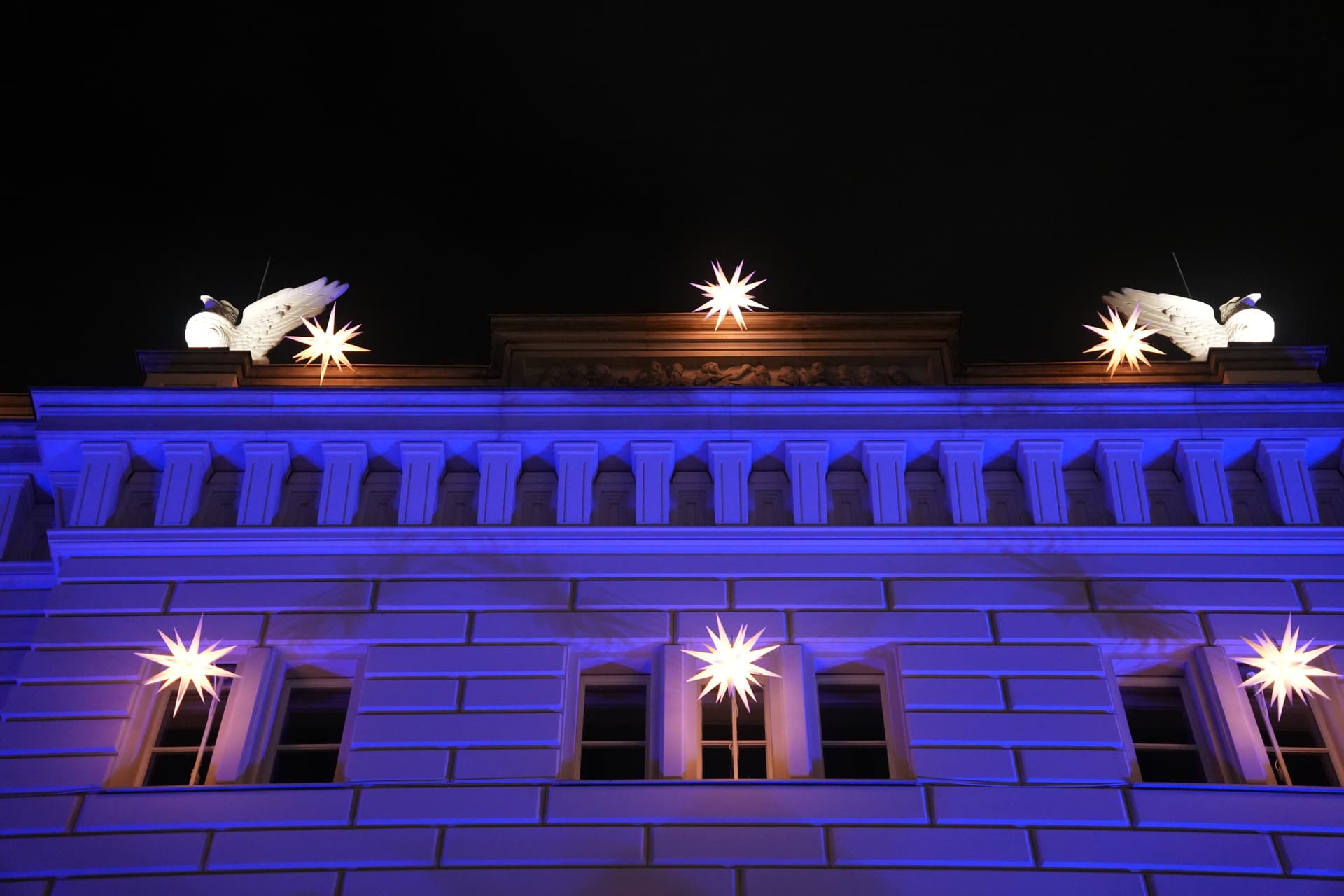 Hier beim letzten fehlt Kontrast und im Bild selbst gibt es keinen Anker. Der Baum verschwimmt zu sehr mit dem Hintergrund und die Dominanz des Gold/Gelb/Sepia verschluckt Details. Die überblendenden Lichterketten überstrahlen fast alles.