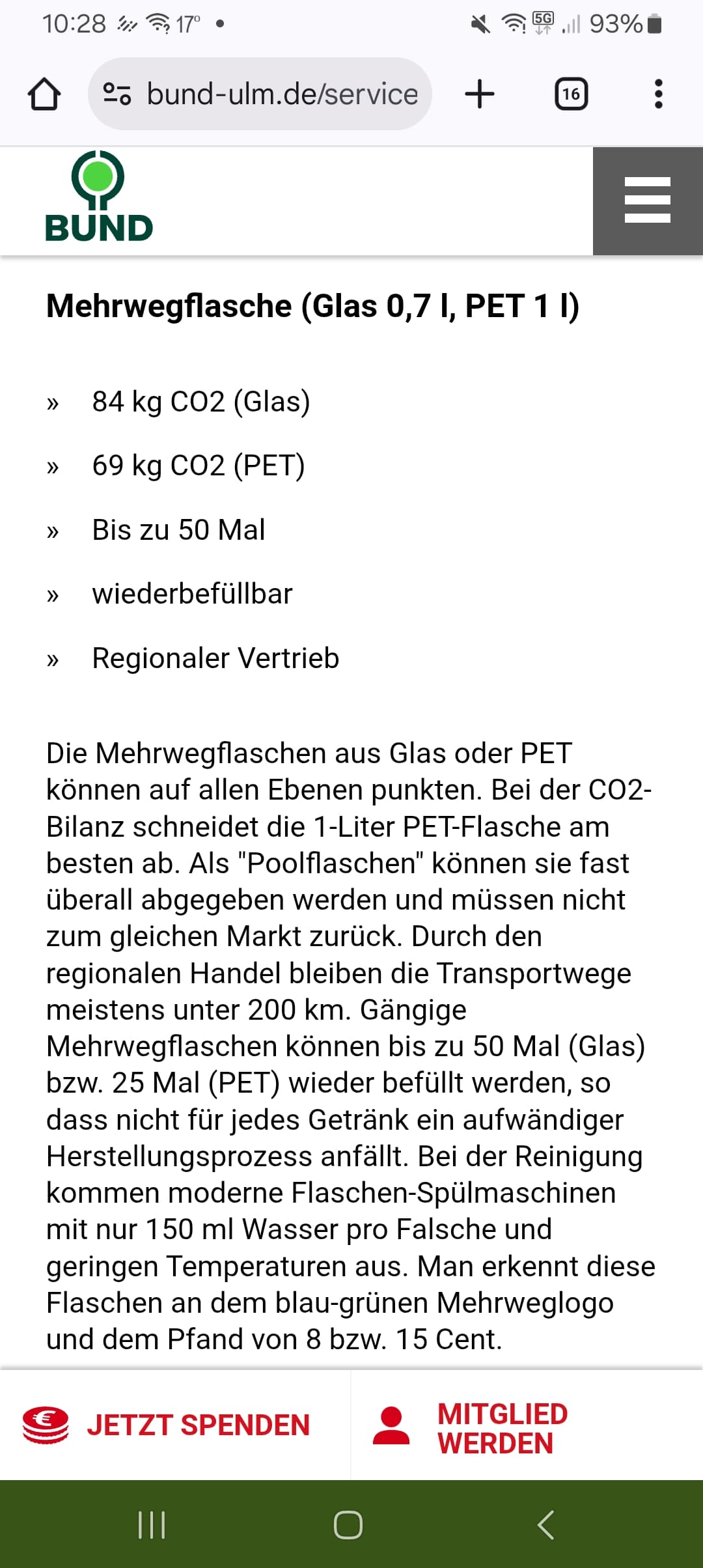 Und bei Co2 schneidet die 1l PET Flasche auf platz 1 ab neben Glas