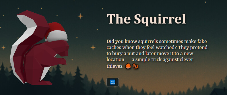 Es gibt jeden Tag ein Türchen mit einem Tier. Dahinter verbirgt sich noch ein kleines Worträtsel, wenn man dieses löst, passiert mit dem Tier noch was „weihnachtliches“. ![]()