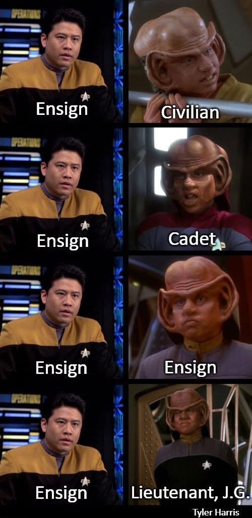 Gestern die Demo von Voyager: Across the Universe auf der NS2 gespielt (Demo ist mehr oder weniger der Pilotfilm) - und musste lachen, als Paris zum Lieutnant befördert und der zu Kim meint, dessen Beförderung ist gleich um die Ecke (zugegeben: Kim kam direkt nach der Akademie auf die Voyager)