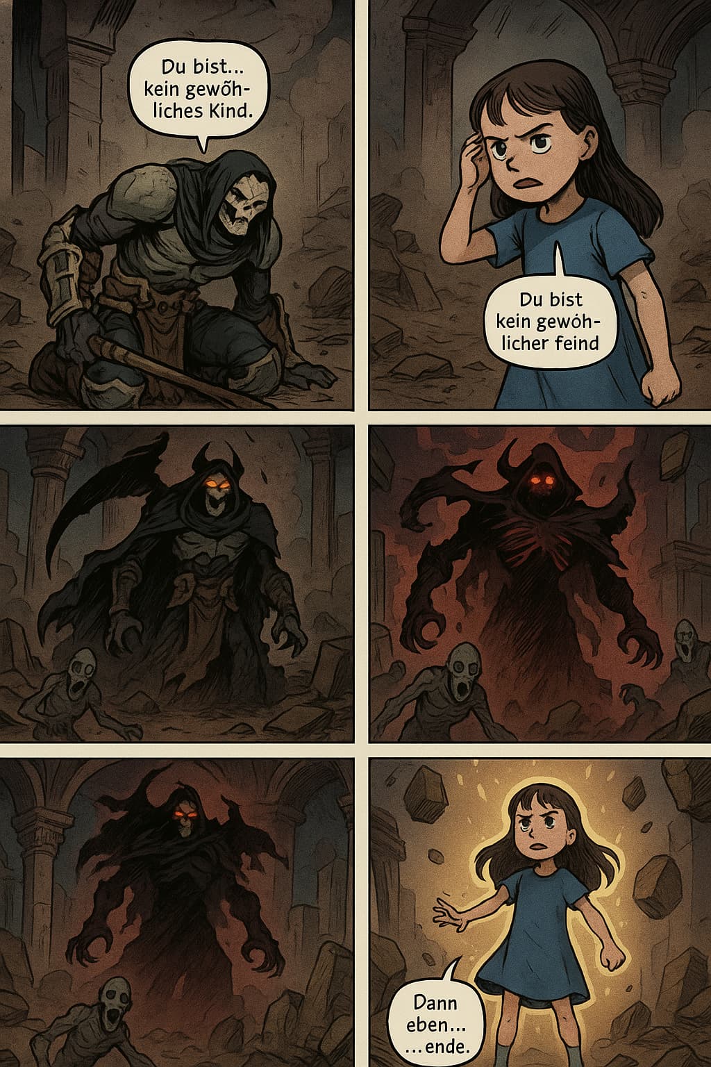- O’Dimm kontrolliert Realität, Zeit und Sprache selbst – er ist immun gegen sprachbasierte Manipulation, weil er selbst der Ursprung von Sinn ist.